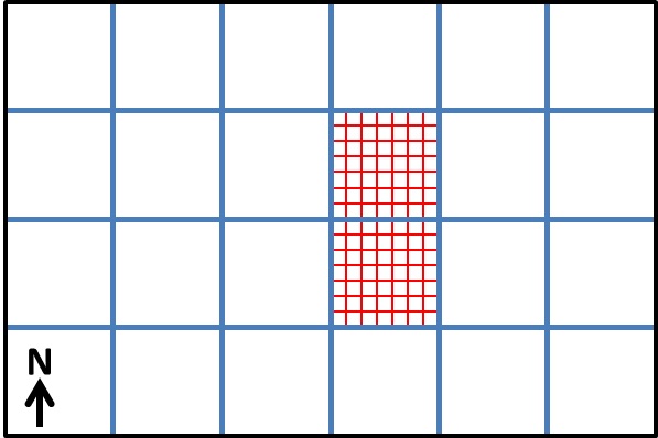 Once the flow simulation grid(s) are created, the properties from the geological grid must be transferred into it (them). Two techniques are used. When the simulation grid has larger cells than the geological grid, property upscaling is used (Figure 4 and Figure 5); and secondly, when the simulation grid has smaller cells than the geological grid, property downscaling is used (Figure 6).