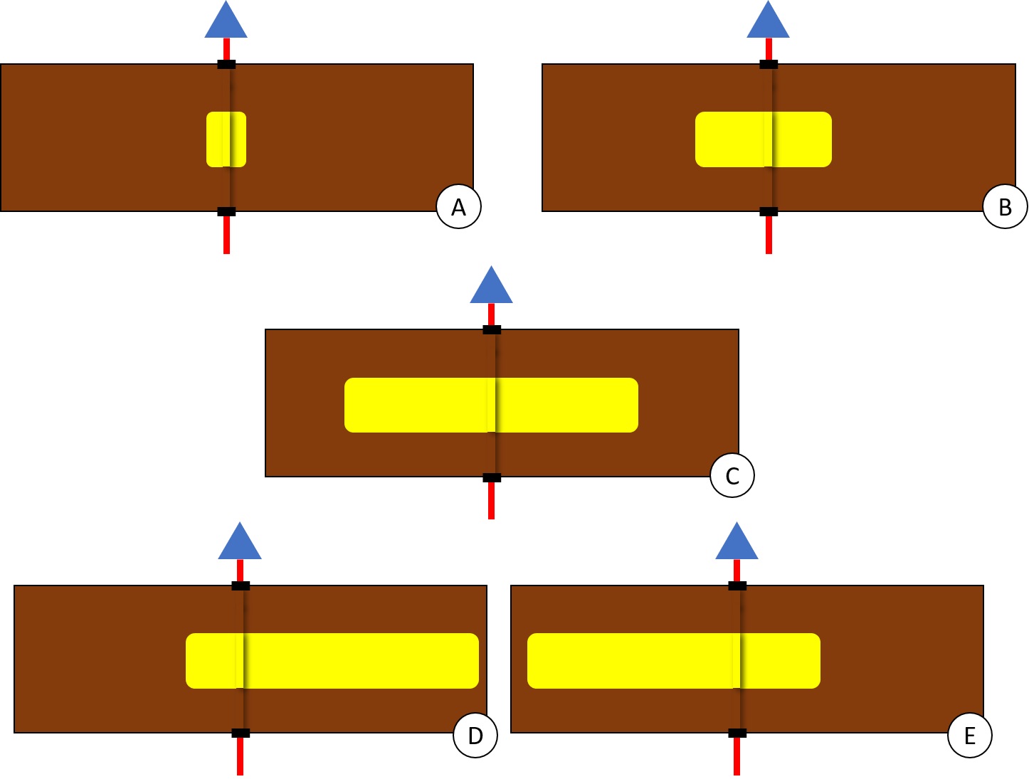 What can be said about the size of that sand geobody based on the cumulative oil production? If we are building the geomodel at the beginning of the production of the well, we would only have a very small cumulative production. That total could come from any size of geobody. The geobody could be a very small sand bar, or an extended sand geobody. We would have no way to narrow it down. But if we are building the geomodel around the end of the life of that producer, then we can narrow down a little. For example, one might say a geobody as small as seen on Figure 3A is not possible. At minimum, we need to have a geobody big enough to allow for that production to have occurred. But apart from that, everything is still possible. Figure 3B could be a geobody just big enough for that total production and the production stopped simply because that geobody was completely drained. Figure 3C is a much larger geobody. In that case, we could make the hypothesis that this well as finished draining the volume of the geobody that it can drained. If we want to get more oil out of that geobody, we need to drill a second vertical well. This proposal could be part of our development plan for this reservoir. But where shall we drill that new well? Indeed, even if Figure 3C is a valid geobody, are we sure of its spatial distribution? Figure 3D and E shows the same geobody than on Figure 3C but shifted to the left or the right. If the reservoir is like Figure 3D, then we need to drill the new well to the right of the existing well… but if the reservoir is like Figure 3E, we need to drill to the left of the existing well. And we still can’t tell if the reservoir has even that large shape. It might be just of a size like in Figure 3B and in that case, any new well would only penetrate the surrounding shale. Again, you have here illustrated the complexity to tie a measure of production to a specific, unique rock characteristic. At best, such data can sometimes help us discarding extreme un-realistic scenarios.